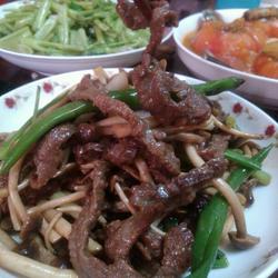 7. Just fry the beef tenderloin in oil and then add tea tree mushrooms and stir-fry.No seasoning is needed.