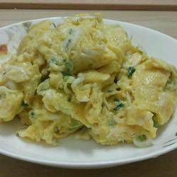 9.Fry until the eggs are just cooked and scoop them out immediately