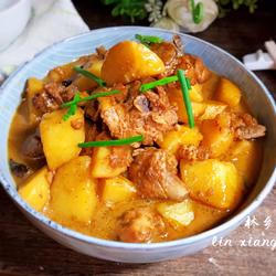 • Illustration of how to cook chicken legs stewed with potatoes 1
