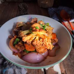 13.Add onion, ginger and garlic and stir-fry until fragrant