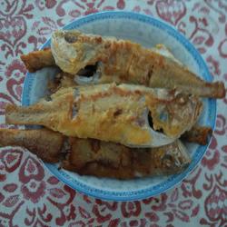 6. Put the yellow croaker dipped in corn flour into the pot and fry over medium heat.Both sides are golden brown.
