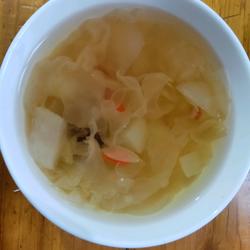 1.Soak the white fungus for half an hour, tear it into small pieces, and cut the pear into pieces