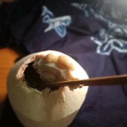 1.Take out the coconut juice.(If there is less coconut juice, you can add some water, but it is not a luxury version.Please estimate the amount of coconut juice in advance.) It is more convenient to place a cutting board on the ground to carve out the coconut.Old coconut meat is difficult to get.If you have experience, you can take out the coconut meat, cut it into one-centimeter-wide slices, and put it in when making soup.Don’t worry if you are a newbie who really doesn’t know where to start.As long as the coconut is good and the chicken is good, anything without any added flavor will be great.If there are impurities in the coconut water, remember to filter it first.