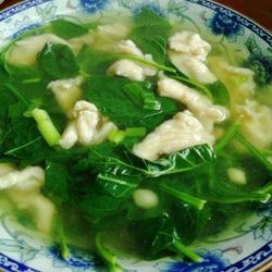 6.You can have it in a bowl Add a few drops of sesame oil and the fragrant chili leaf chicken slices soup is ready.The soup tastes a bit like pea shoot soup.