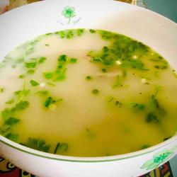 5. Season with salt and pour into a soup basin with chopped green onion and coriander.