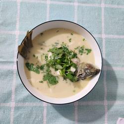 8. Wait until the fish soup becomes white and the soup is slightly When it thickens, take out the pan and sprinkle with chopped green onion and coriander