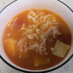 7.After the enoki mushrooms are fried until soft, add tomato sauce, appropriate amount