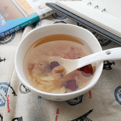 1. Prepare ingredients: soak white fungus and peach gum in advance, Wash the red dates and peel the longan