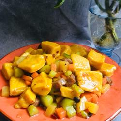 14.Pour in diced vegetables and stir-fry