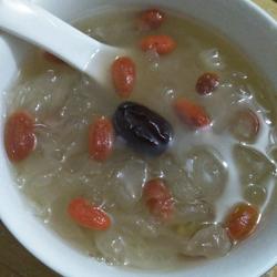 The white fungus should be soaked for about half an hour; the rock sugar should be used according to personal taste.