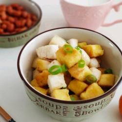 I didn’t add any other side dishes to this recipe, friends who like it can add them as they like.When dipping the diced golden buns into the egg liquid, dip them evenly.