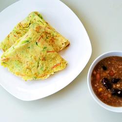7. When the cake is formed, turn it over and continue to fry it over low heat.Repeat it twice and it will be cooked..