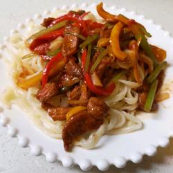 9. During the proofing period, awesome side dishes, dried onions, ginger and garlic Saute the pepper until fragrant, add the onion and saute until fragrant, add the tomatoes and stir-fry until the juice is released, finally add the green pepper, add salt and chicken essence and serve! Hold one end of the noodles in one hand and slowly pull them apart and put them into the pot! After cooking, add water and mix it with vegetables!