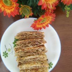 4. Cover the top with a layer of skin, press it down gently with your hands, then brush with egg wash and add the meat filling.Repeat for a total of 4 layers