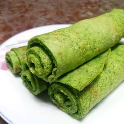 1. Wash the spinach, chop it into sections, add eggs, flour, and green onions into a food processor, and add cold water.Beat well and set aside.