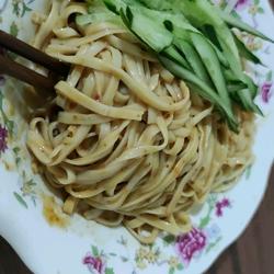 4.Put the prepared ingredients into the bowl and stir evenly over the noodles, then add cucumbers Just wire.