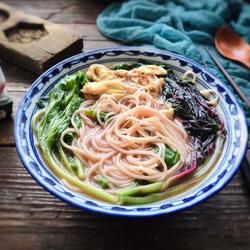 Noodle soup is nourishing and delicious.You can add any ingredients you like into the noodles.If possible, adding some shredded pork will make it more delicious.