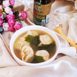 9. Put an appropriate amount of fillings and a piece of shrimp into the prepared wonton wrapper, and then fold it in half.Triangle, then glue diagonally together to form wontons.