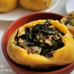 15.Take out a small piece of corn dough, flatten it, and add the filling