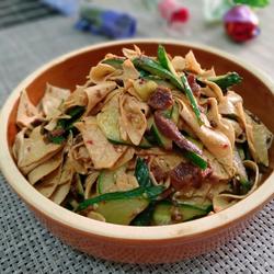 7.After the aroma comes out, turn to medium heat, add bean curd skin and stir-fry for two minutes p>