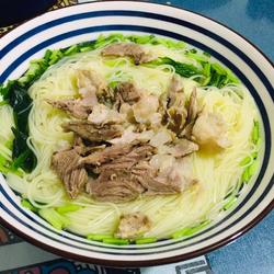3.Put an appropriate amount of beef soup into the pot, bring to a boil and add bamboo noodles.