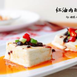 8.Use a small spoon to pour evenly on the lactone tofu, and then put on the millet Pepper and garlic.