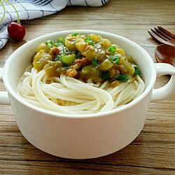 10.Add appropriate amount of salt and chicken essence, sprinkle with remaining chopped green onion, stir-fry evenly, turn off the heat, and add eggplant Stir into the cooked noodles and eat.