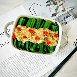 9. Pour the scallion oil and garlic paste into the okra plate, and add the millet spicy sauce Just decorate.