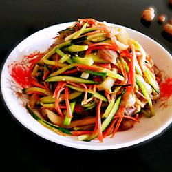1.Prepare ingredients: 1 cucumber, 1/2 carrot, 2 eggplants, and a small amount of green onions.