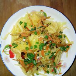 1. Cut the pumpkin and red pepper into shreds and set aside for later use