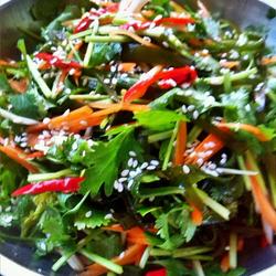 5.Put all the chopped ingredients into a large plate, add sesame oil, light soy sauce, rice vinegar, salt and MSG and mix well