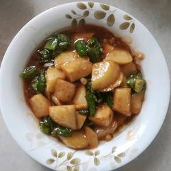 4. Put an appropriate amount of oil in the pot, heat the oil and add the chopped Fry the potatoes until golden brown and take them out, then add the chili peppers and fry them until cooked and remove them