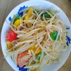 1.One-third each of green and red peppers, shred one potato, wash with water, remove starch and set aside.