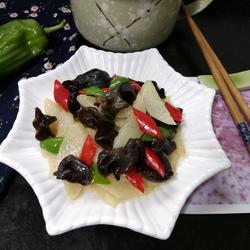 5. Stir-fry for a while, then add the fungus and stir-fry together.Add a spoonful of salt to taste