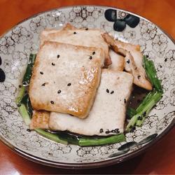 2.Cut the tofu into thin slices and place on a plate