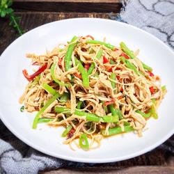16.Put amaranth stems and red pepper shreds into a large bowl, pour in the sauce and mix well