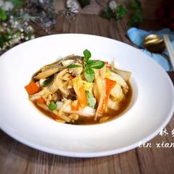 •  Illustration of how to stir-fry oyster mushrooms with cabbage 5