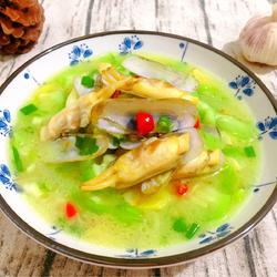5. Stir-fry the loofah until soft, add the razor clams, turn to medium heat and stir-fry