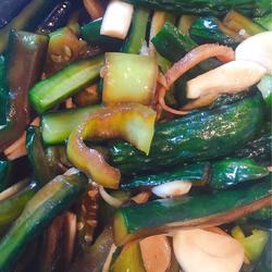 7.After the cucumbers are pickled, discard the pickled ones.For soup, squeeze out the water from the cucumbers with your hands and add chopped peppers, garlic and ginger