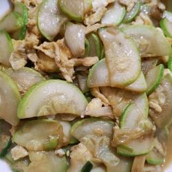 4.Saute onion and garlic until fragrant, add zucchini, add light soy sauce and oil, stir-fry
