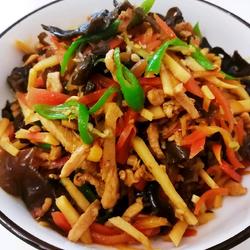 1.Cut the winter bamboo shoots, carrots, and fungus shreds, then blanch them and remove them for later use