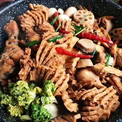 3.Dry the flowers, lotus root slices (cut into thick slices), yuba, Wash the dried white beans, quail eggs, king oyster mushrooms (cut into thick slices), day lily, and dried red pepper.Put them in a pot with water and bring to a boil over high heat.Turn down the heat and continue to cook for 20 minutes to get the flavor.