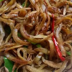 4.Step 4: Heat the pot and add oil! When the oil is hot, add onion, ginger and garlic and sauté until fragrant.Add whitebait and stir-fry over low heat until golden brown.Add green and red pepper and stir-fry.Add chicken essence and stir-fry for a few times and serve!
