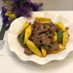 2.Cut the mango, green bell pepper, onion and ginger and set aside.Don't cut the mango into too small pieces, otherwise it will be fried.