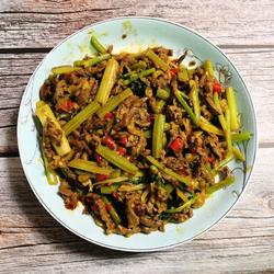 7.Add celery and fry until cooked.Add appropriate amount of salt to taste