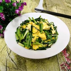 1.Wash the garlic and cut into sections, crack the eggs into a bowl, mix well and set aside