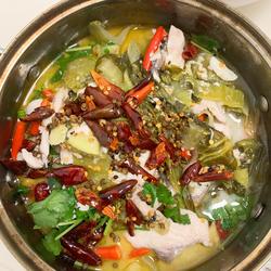 4.Put in the ginger and garlic slices, pickled vegetables, and fresh Stir-fry the millet pepper and pickled pepper until the aroma comes out, then pour in the fish soup just now! A little bit of white pepper, then sprinkle in Sichuan peppercorns and dried pepper.Add salt to taste.Just make the fish soup and leave the fish bones at the bottom of the bowl.You can eat it later!