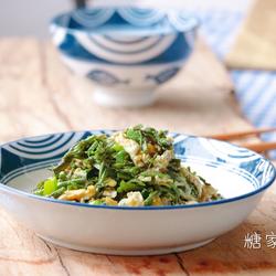 6. Heat the oil in the pan, scramble the eggs first, then add the Chinese toon and sprinkle A pinch of salt.