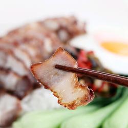 1. Cut the plum blossom meat into strips about 2 cm wide.Chop the ginger, wash the green onions and tie them into knots.Mix tofu, barbecued pork sauce A, oil, light soy sauce, high-strength wine, sugar, salt, minced ginger, and green onion, pour it on the plum pork, spread evenly, put it in a container, refrigerate and marinate overnight.