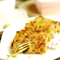 14.Put oil in the pan, add the radish cake, and fry until both sides are golden brown.